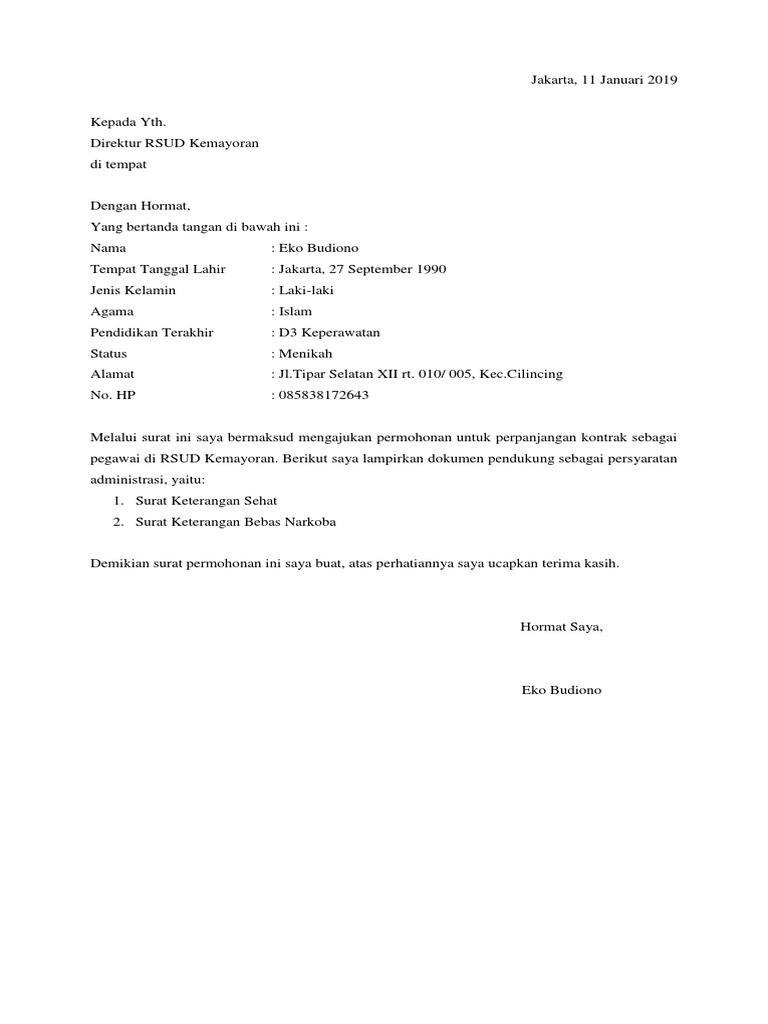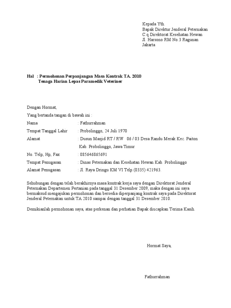 Contoh Surat Permohonan Perpanjangan Kontrak Kerja Pdf