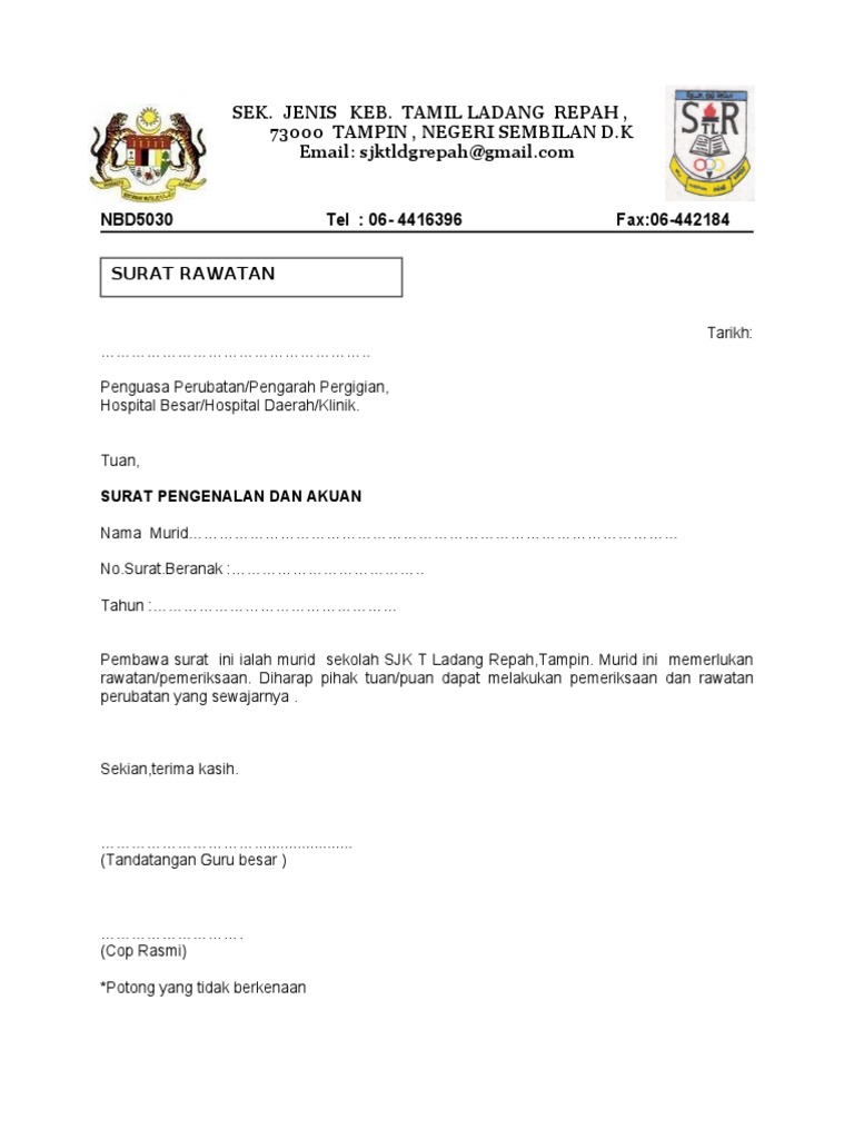 Contoh Surat Rawatan Hospital Pelajar Pdf
